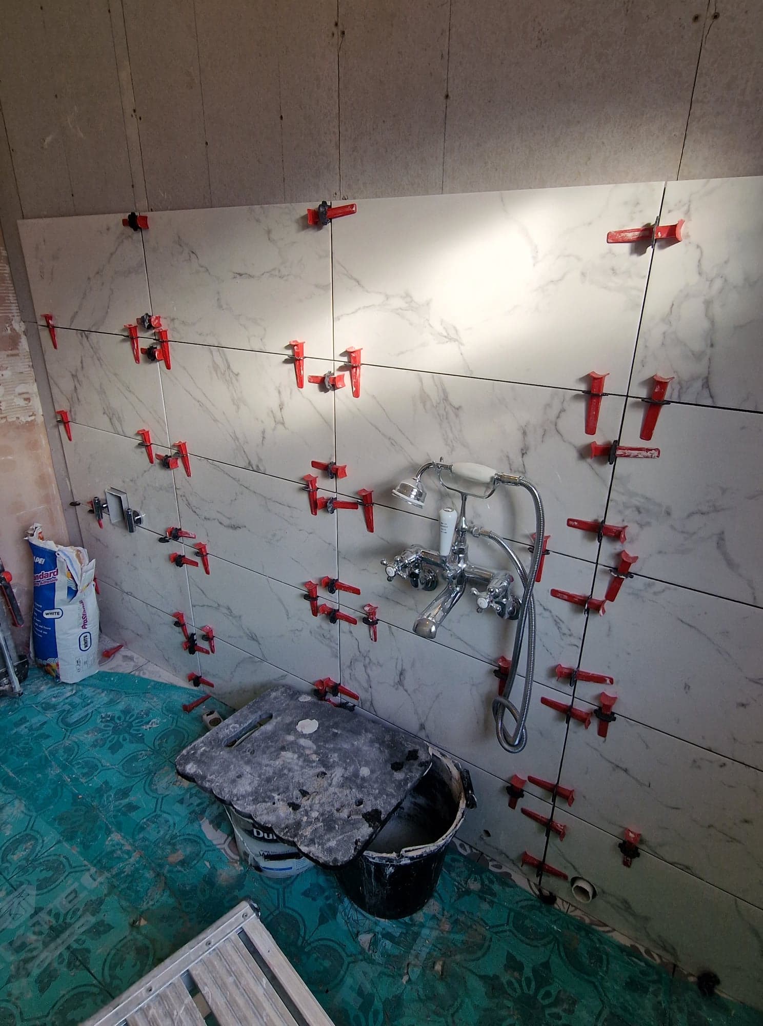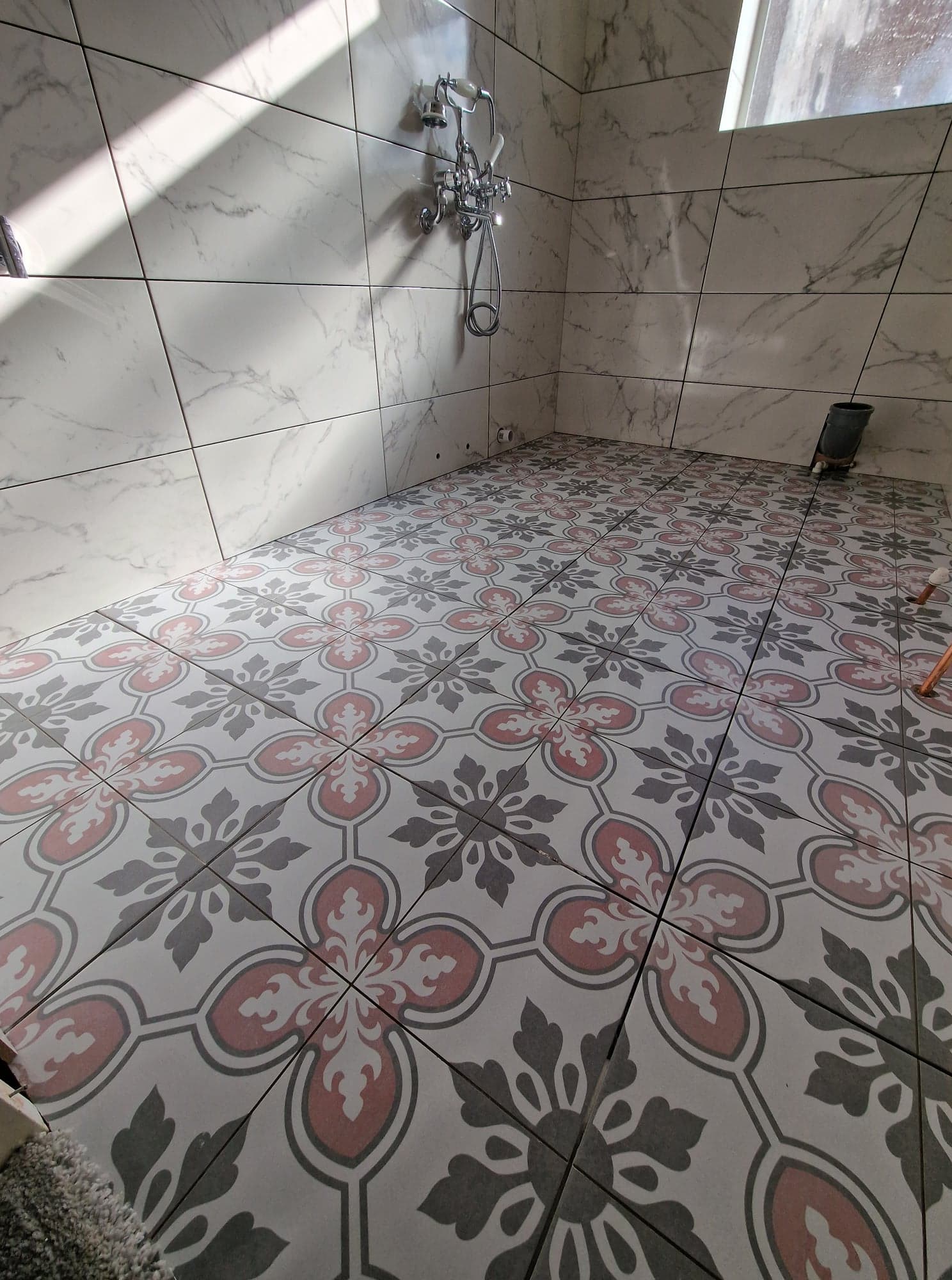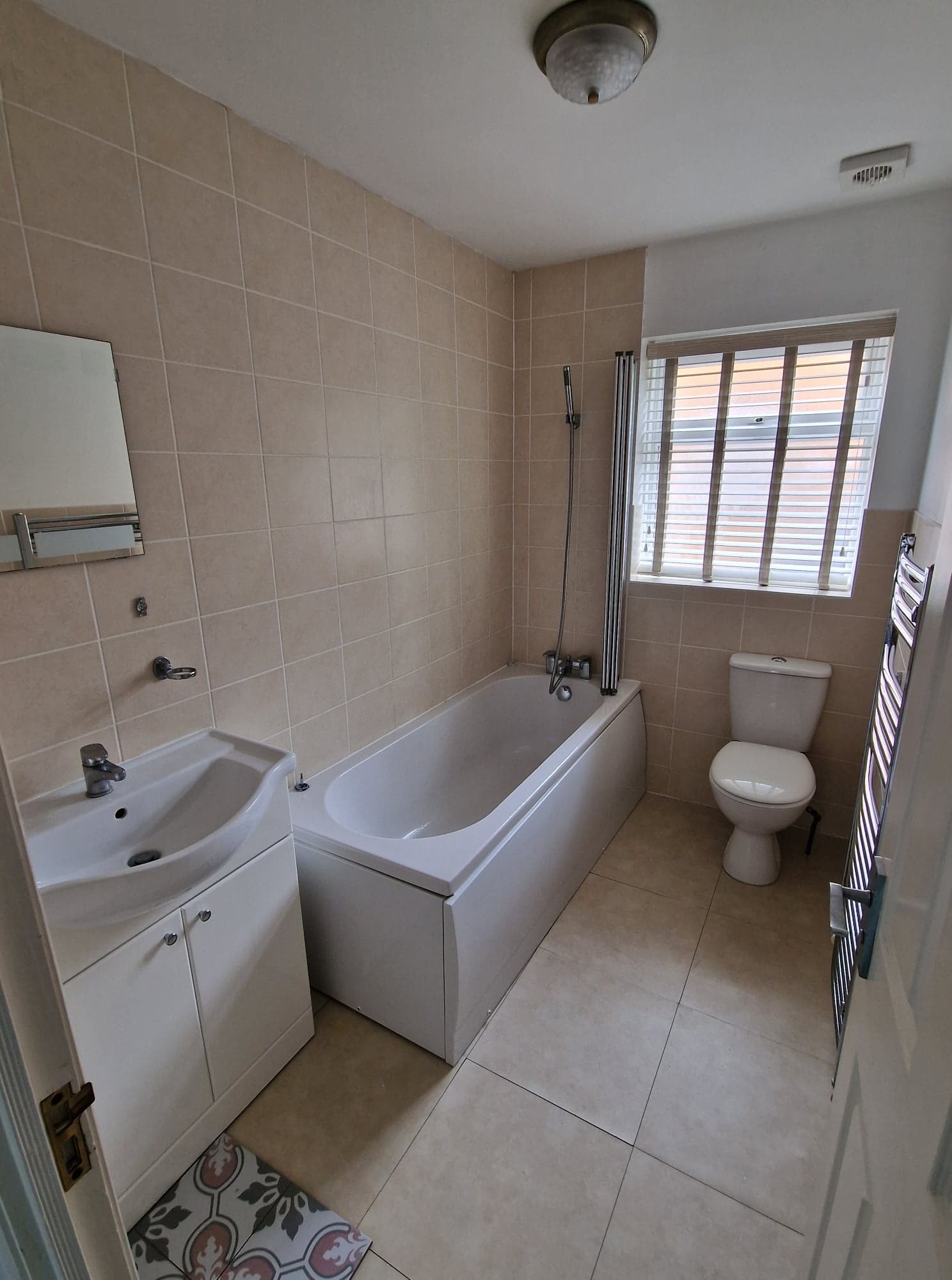Bathroom refurbishment. New tiles, new bath, shower, basin and toilet all put together in under a week! Get in touch to find out how much this transformation will cost you. We can help you choose the bathroom tiles and suite - we use a range of reliable and quality suppliers. You would be surprised how cheap a refurbishment like this can be. Call us today: 07737 100 716
